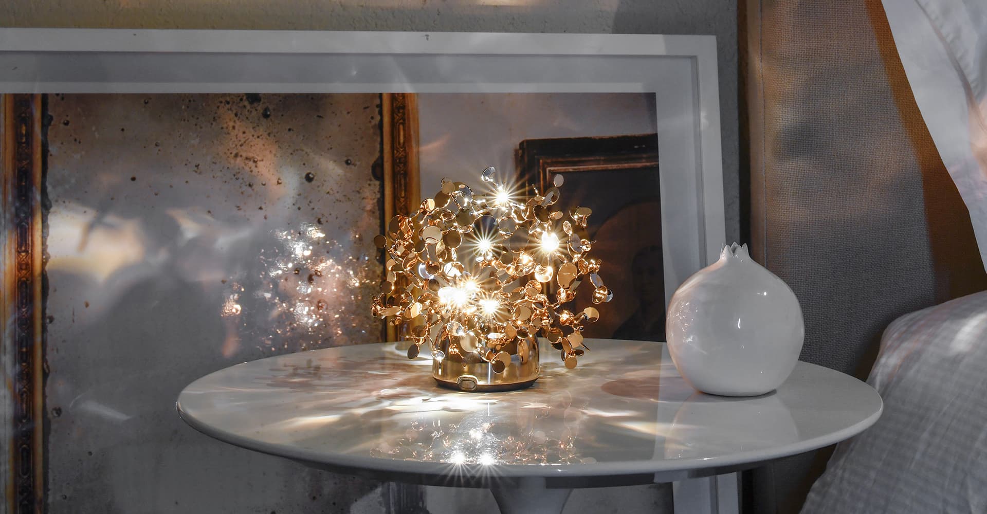 Our answer is a new series of pendant lights and table lamps that draws inspiration from across design from the fashion of Paco Rabanne, the work of Verner Panton, the mirrored art of Julio Le Parc, and the natural beauty of the Italian seaside. The result is a lamp reminiscent of a shimmering cloud casting brilliant, ethereal light across the room. Handmade by our craftsmen in stainless steel, each piece is both unique and a modular element of an extremely flexible system. Our goal is to give architects and designers the freedom to express their visions without limits, adapt to any environment, and add a touch of magic. Design Dodo Arslan. Made in Italy.