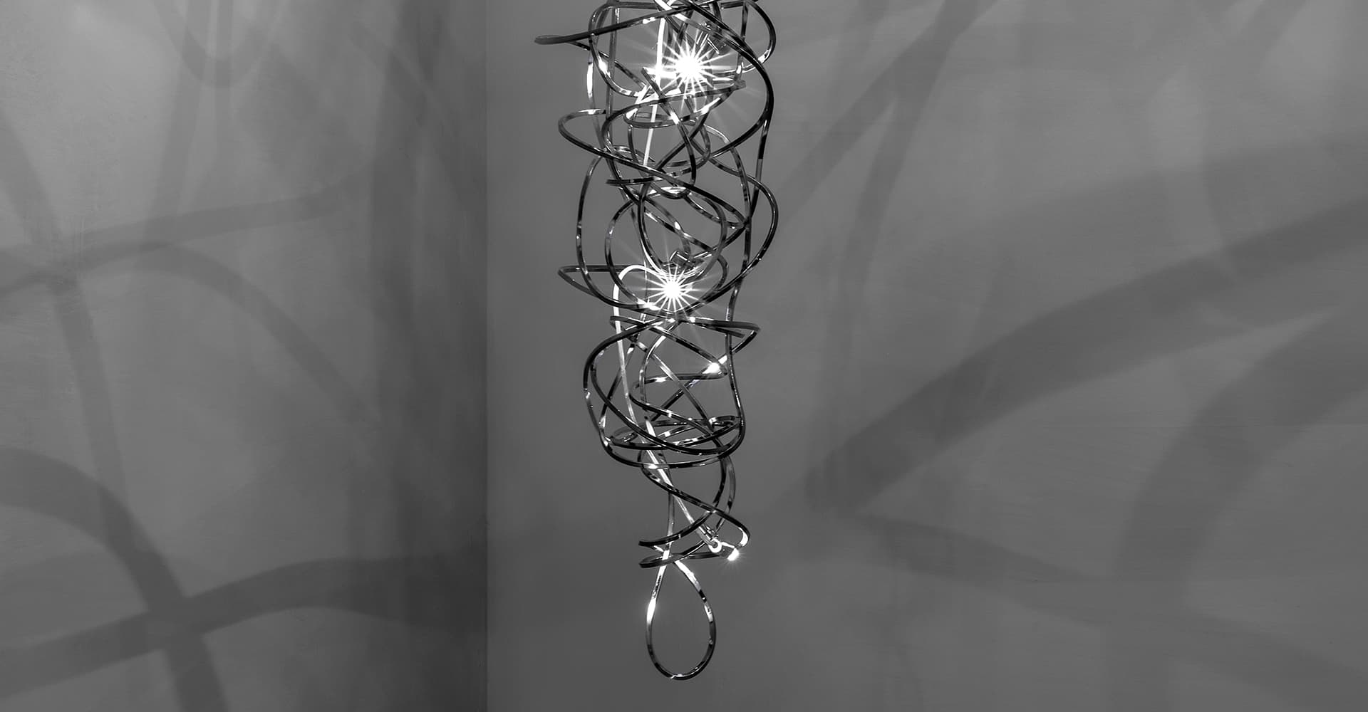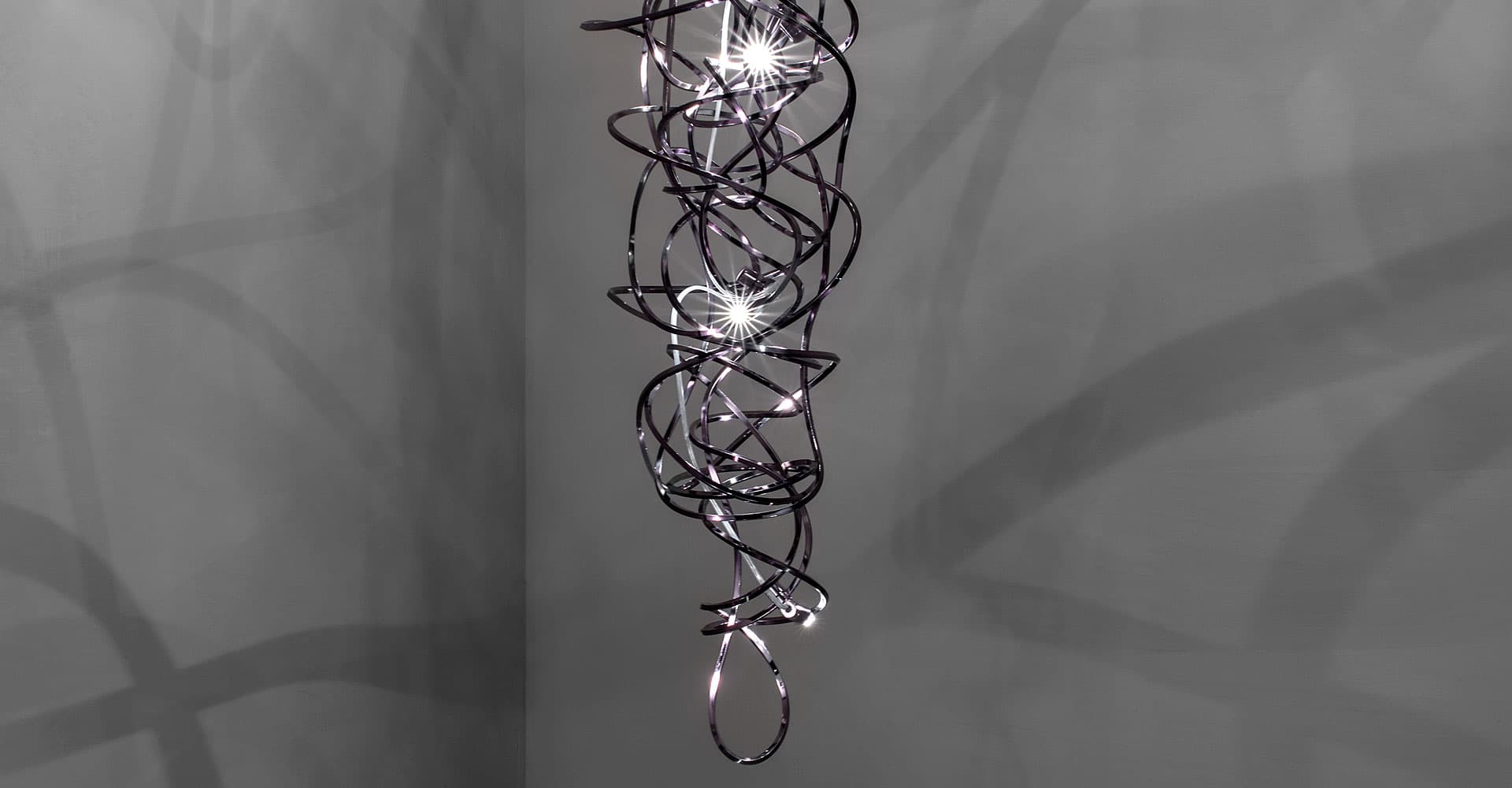 We no longer march in a straight line. Our lives are dynamic, intertwining collections of relationships, experiences and journeys. Reflecting the fluidity of our generation, designer Simone Micheli has created a new, contemporary light for Terzani, Doodle. Like us, each Doodle is unique, each pendant is handcrafted by artisans to resemble a randomised path. And, to give us control over the journey we want to take, each led bulb can be placed anywhere on the light, not only reflecting the choices we make in life, but giving Doodle a special flexibility. Available in nickel, black nickel, gold and copper plated finishes. Design Simone Micheli. Made in Italy.