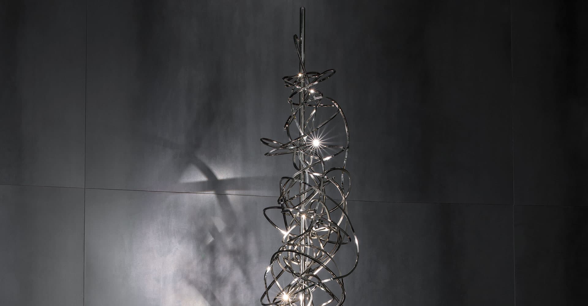 We no longer march in a straight line. Our lives are dynamic, intertwining collections of relationships, experiences and journeys. Reflecting the fluidity of our generation, designer Simone Micheli has created a new, contemporary light for Terzani, Doodle. Like us, each Doodle is unique, each pendant is handcrafted by artisans to resemble a randomised path. And, to give us control over the journey we want to take, each led bulb can be placed anywhere on the light, not only reflecting the choices we make in life, but giving Doodle a special flexibility. Available in nickel, black nickel, gold and copper plated finishes. Design Simone Micheli. Made in Italy.