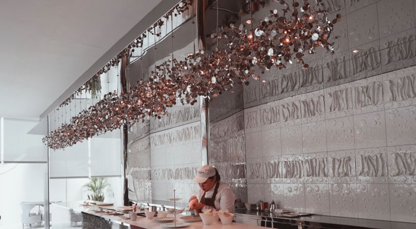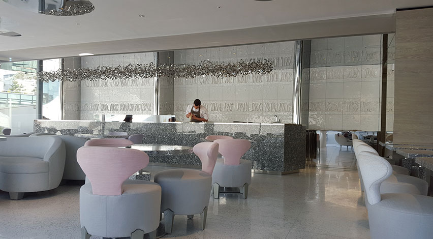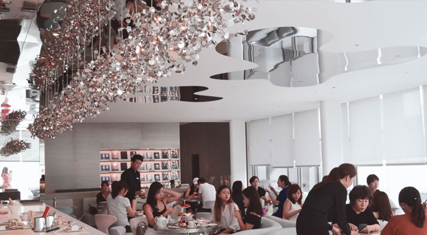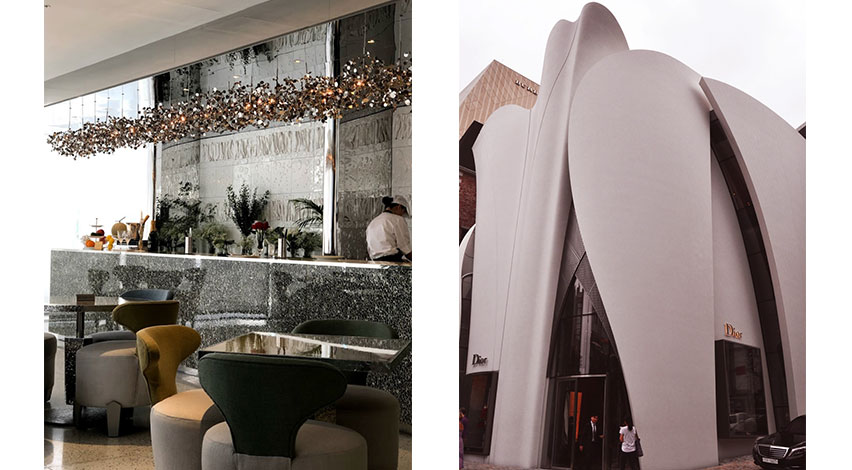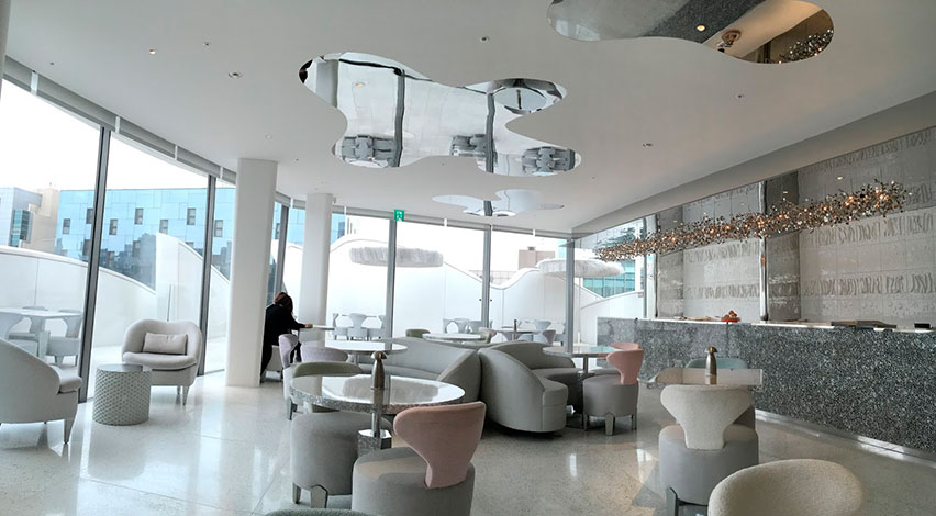 Soft Argent lighting in the beautifully decorated Dior café